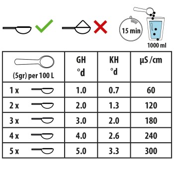OsmoVital verhoogt de KH (carbonaathardheid) & GH (totale hardheid) en voegt essentiële vitaminen en sporenelementen toe zoals kalium, ijzer, mangaan, boor, jodide, fluoride. Zowel KH als GH dragen bij aan een stabiel pH-niveau in een aquarium: terwijl GH de nodige mineralen levert, is KH meer direct verantwoordelijk voor het handhaven van een stabiele pH, en werkt het als een beschermende buffer.